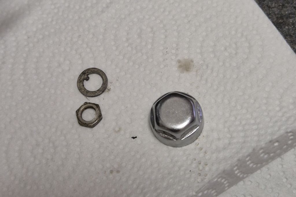 Рихтувати трилапку та заводську зірку — не так і просто. При цьому може хром потріскатися. Краще починати з підбирання товщини шайб під гвинти, що притягують зірки до трилапки. Між трилапкою та зіркою. Замість шайб можна на початку застосовувати мідний чи алюмінієвий дріт. У Вашому випадку може допомогти лише одна шайба товщиною 0.2-0.4 мм під гвинтом, що на фото понизу/попереду.