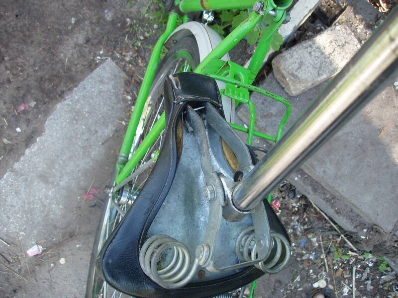 Велосипед выше, что прошёл через мои руки, предположительно никто не трогал. Его купили, немного покатали, и бросили в сарай. Не похоже, чтобы на нём успели ушатать родное седло. Не логично было бы на велосипед с таким обращением, где ничего не было регулировано, но ничего не было сломано — тупо купили и немного поездили, пока ездило, вдруг зачем-то купили новое седло. А седло, по всему видно, примерно ровесник велосипеда. Ещё менее вероятно, что его открутили с другого велосипеда. Донор что — весь должен был развалиться, только седло остаться?