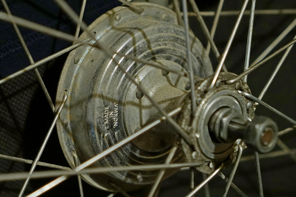 Обод алюминиевый, несмотря на массивную ступицу с тормозом- колесо не очень тяжёлое.