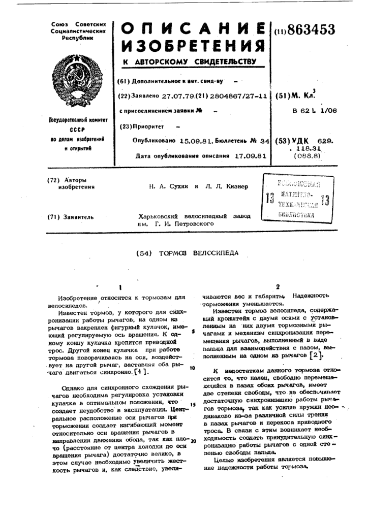 Носорев Тарас, зачем вообще нужна синхронизация рычагов? не будет ли тогда одна колодка давить сильнее при неидеально установленном колесе?