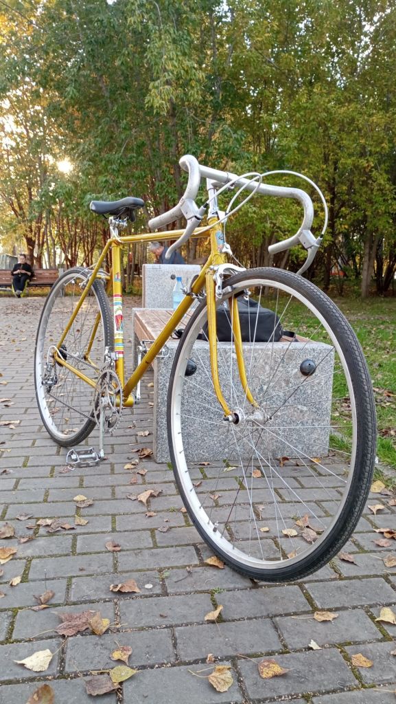 На туристовских колесах (Спасибо Отец и его друзьям с металоприемки), с новой сидухой я поехал в город. По дороге. У меня же шоссейник теперь))