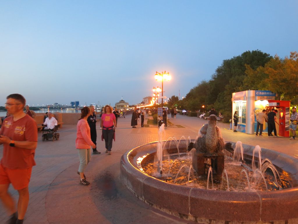 До отправления поезда оставалось не менее пяти часов, желавшие, получив вновь в своё распоряжение велосипеды поехали прокатиться по Астрахани налегке. Была надежда успеть на рынок за последними чебуреками, если бы не проклятая разница в часовых поясах. Осчастливив последних продавцов опустевших торговых рядов, в одном из затерянных двориков на берегу речки Кутума по-студенчески мы и выпили по полпива на прощанье с прекрасным южным городом. И поспешили снова на вокзал. Юля и Володя Д прокатились ещё разок по набережной, а я остался побомжевать на перроне с остальными.