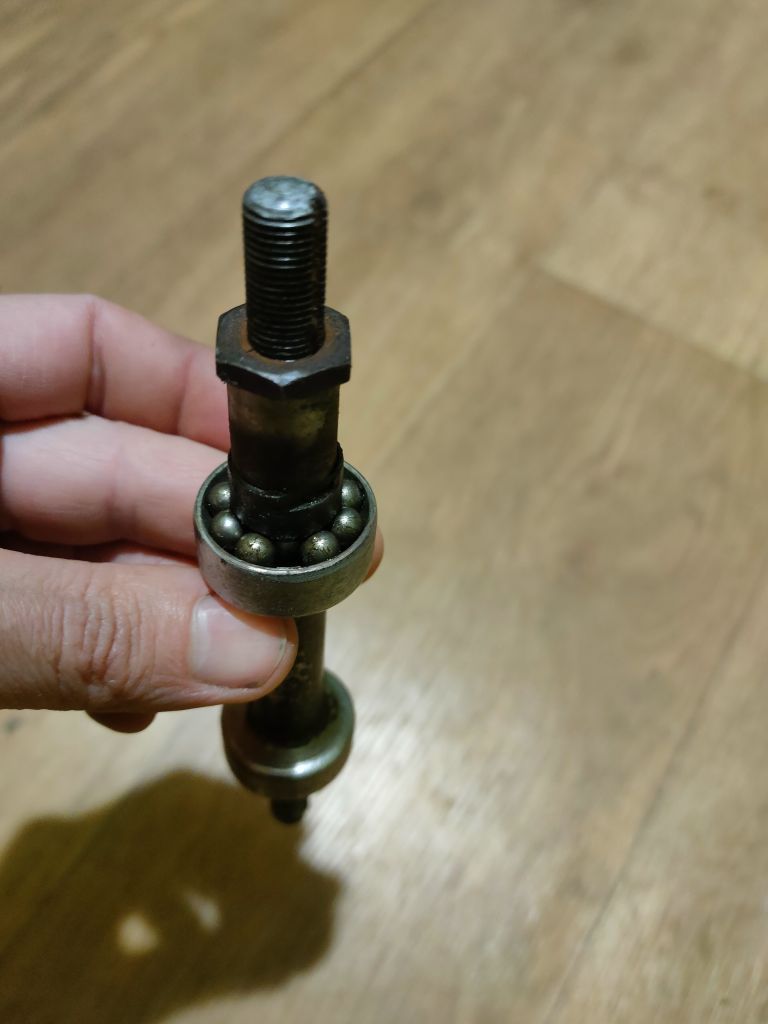 Хотел проверить геометрию вилки, ничего лучше родной оси для этого не придумал. Перед этми решил проверить саму ось. Из трех осей которые есть в наличии, ни одной прямой не оказалось. Если прижать одну сторону резьбой к столу, вторая поднимается от поверхности примерно на 1мм. Все искривления примерно напротив паза под усатую шайбу. Мне одному так повезло? Какое искривление можно считать нормой? Я так понимаю ноль, иначе зачем полировать конуса, но почему они все настолько кривые тогда.