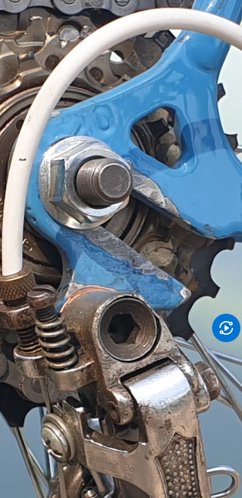 Коли збирав голубого стартона не побачив рік. Мабуть дійсно залито фарбою. Така рама була куплена. З рамою попрацювали. Філігранно роздвинули пера під новий стандарт втулок. Припаяли під кареткою канавки для тросиків. Пофарбували доволі гарно, з грунтом. Але на вилці видно місця де були проблеми або з тиском, або з відстанню краскопульта. Отвори під шильд певно заварені. Не став розсверлювати, щоб фарба не відкололась.