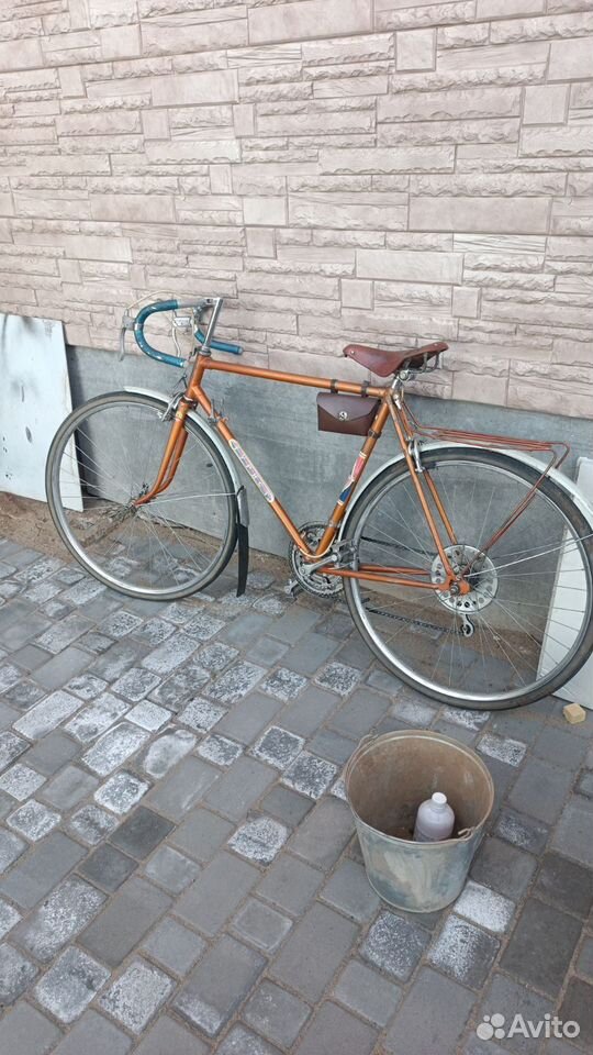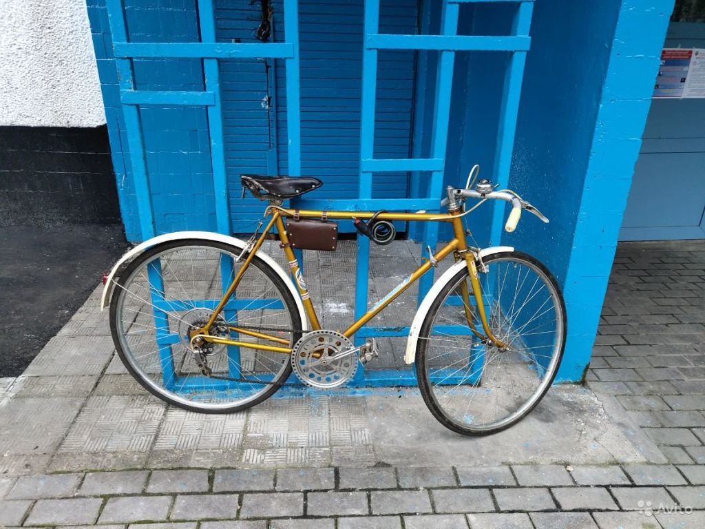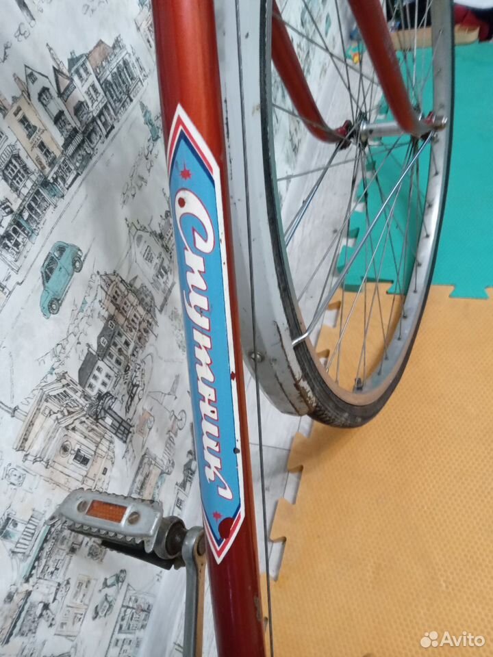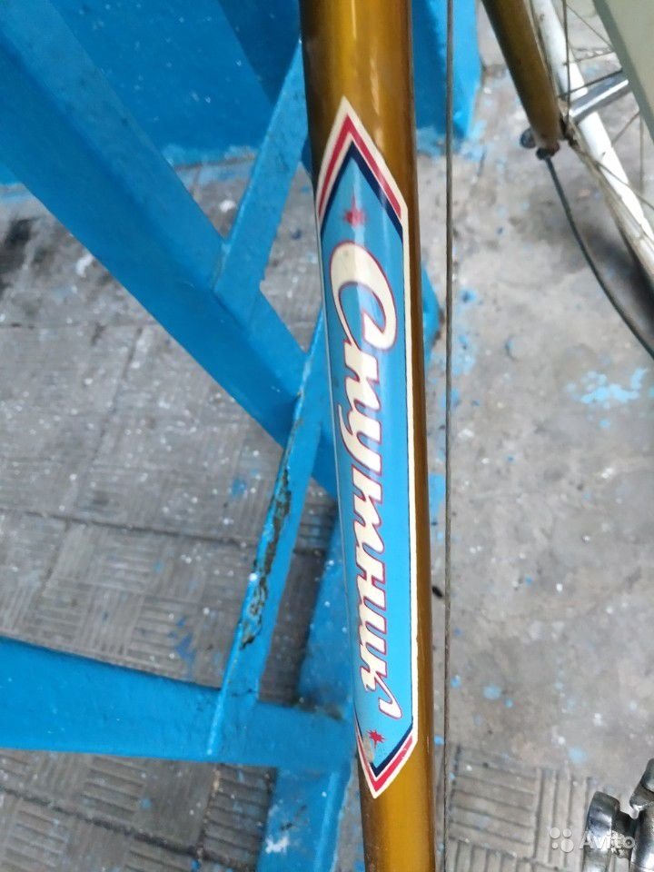 Вот 153-414 "Спутник", на вилке которого деколи в стиле модели В301 "Спутник".  К тому же экземпляр ещё и с редчайшим рулём, не скрученным с "Туристов" 1984-1993 годов, а с тем самым, из темы "Спутники с дорожными рулями". Редкий вариант.