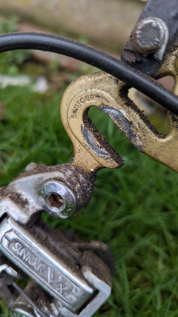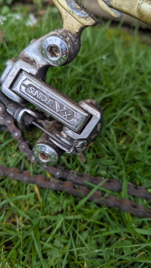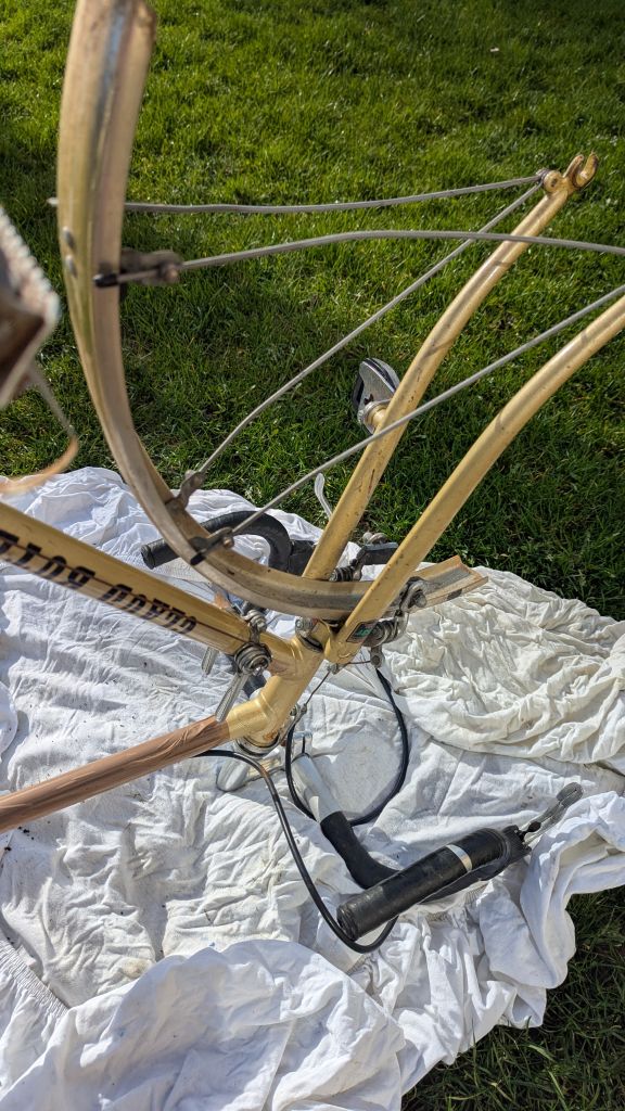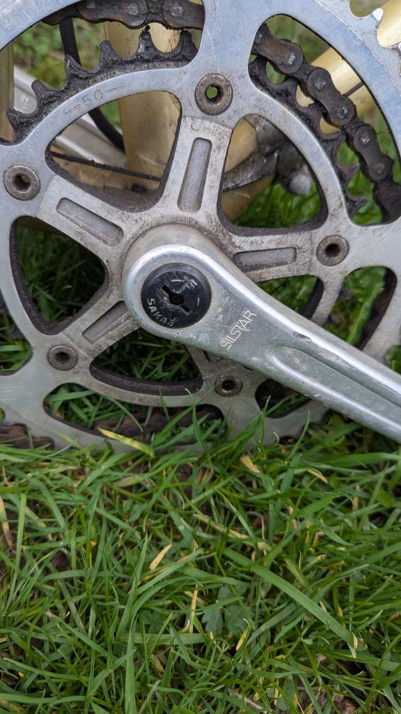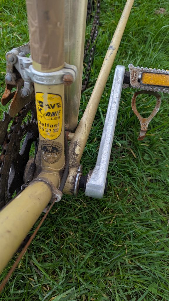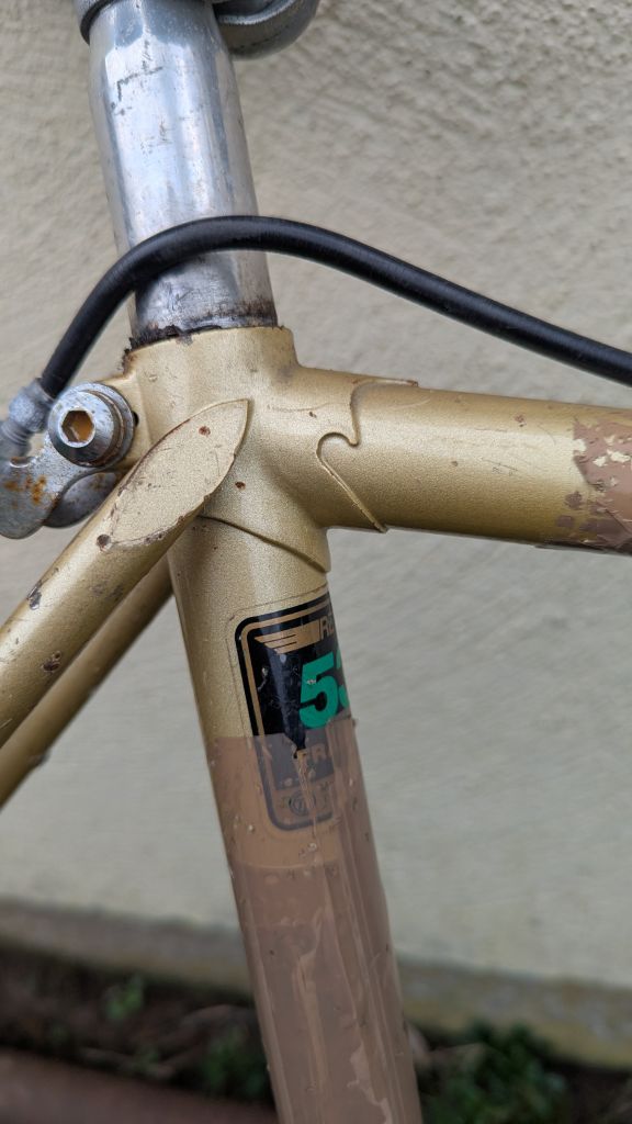 Сегодня добрался до "туриста", решил ему полное ТО сделать. Цепь под замену, задний переключатель едва шевелится (завтра посмотрю что к чему) тросики на выброс. Зато каретка огонь и педали и тормоза в порядке. Застрял почти на два часа снимая этот скотч с горизонтальной и подседельной труб( каким охламоном нужно быть чтобы его поклеить). Самое неприятное что вместе со скотчем снялась часть декали...Общее состояние, как для сорокалетнего велосипеда, очень даже приличное.