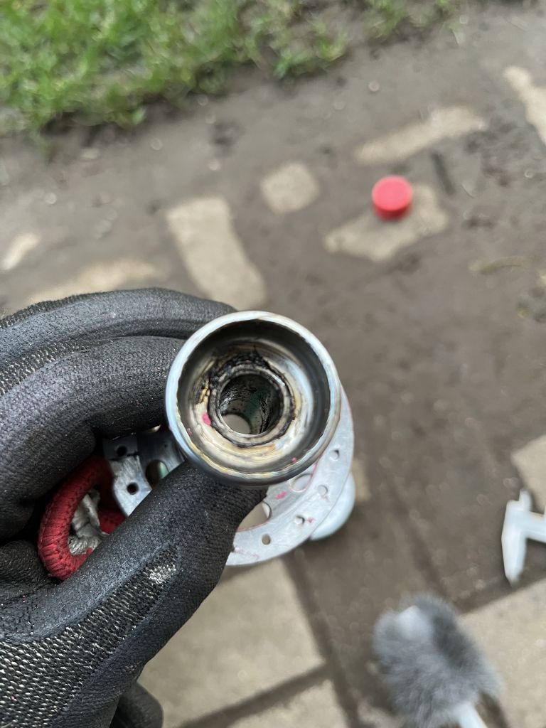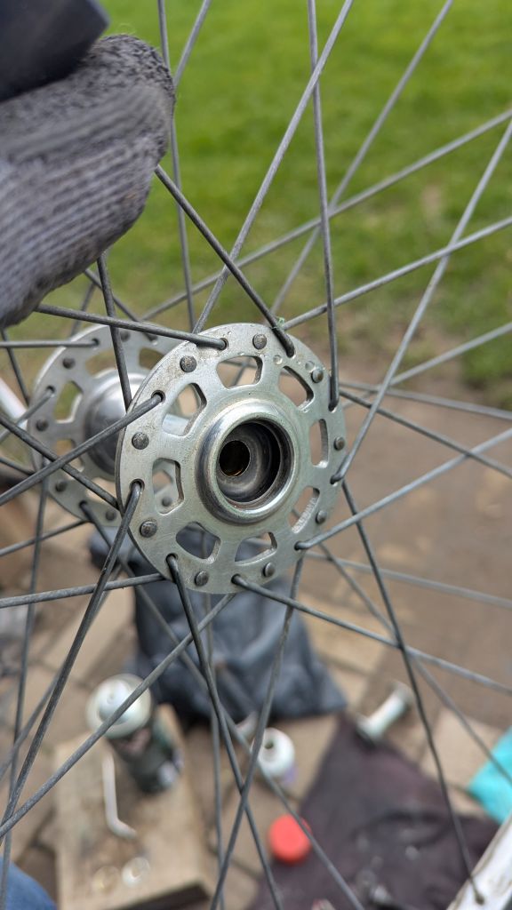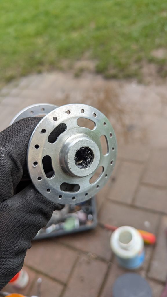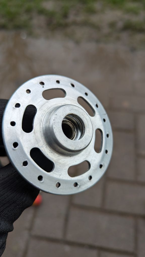А вот с задней втулкой беда приключилась- начал я её чистить от краски и заметил небольшой люфт на фланце со стороны трещотки, втулка состоит из 5 частей ( центральной оси, двух чашек, и двух алю фланцев насаженных на эти чашки) так вот люфт был  между осью и чашкой. Начал расклепывать это дело и один фланец слетел с чашки, по ходу он просто с натягом там сидит. Я конечно все расклепал и поставил на место ( всё стоит как надо без перекоса )но насколько это безопасно катать на такой втулке? Был у кого-то такой опыт?
