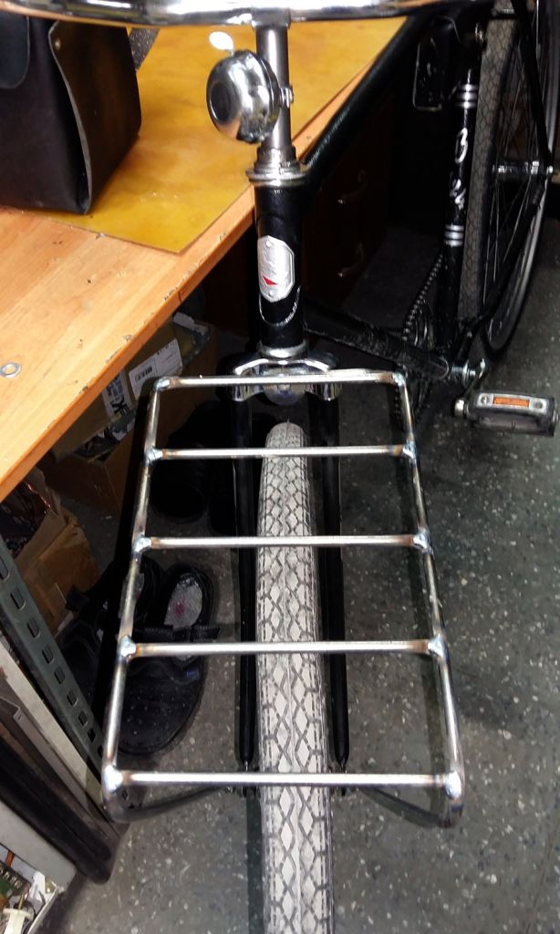 Осенью была необходимость возить объёмные, но не тяжёлые грузы. Примерно раз в неделю одна коробка, скажем 400х300х250. Тогда очень захотел передний багажник-платформу. Купил 2 метра 10 мм алюминиевой трубки за 200р(2 бутылки молока) и положил её в шкаф. Искал время и вдохновение для создания, но вскоре коробки кончились, возить стало нечего, забил на самоделку.