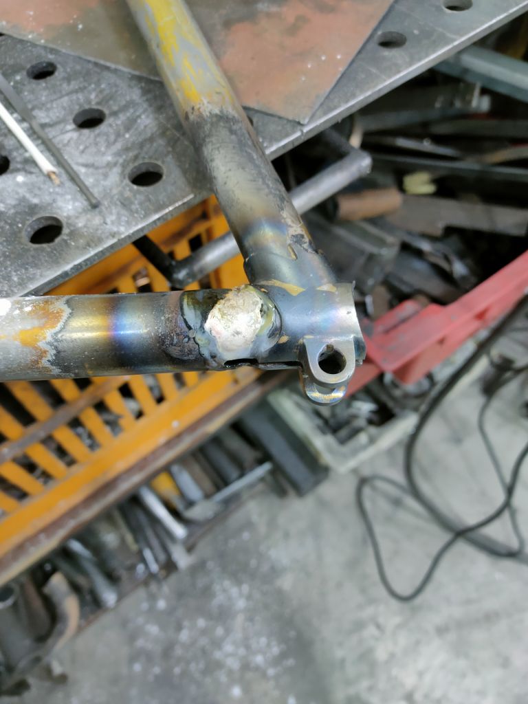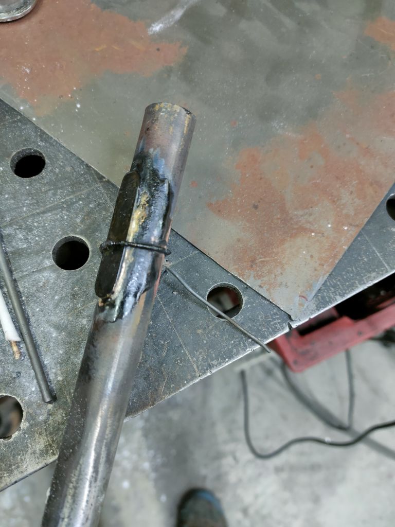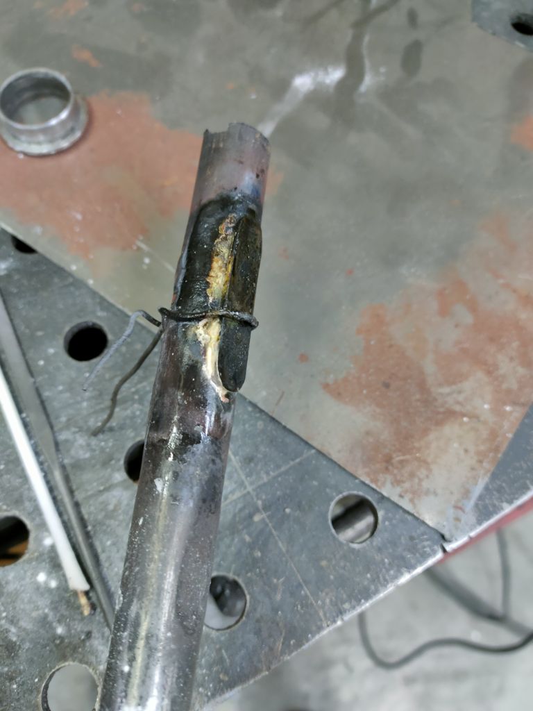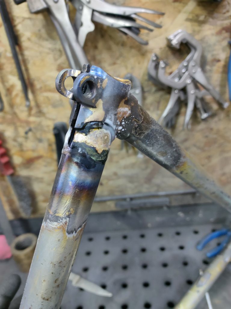 Теперь собственно что я паял. Это накладка на трубу и наплавил там где подседельный узел, галтель же хотел сделать и пару раковин залил. Интересный опыт, что то смешанное между обычный пайкой свинцово-оловянным припоем и сваркой аргоном. Ну больше всего мне это напомнило именно пайку кузовным припоем. Был и такой у меня опыт.)