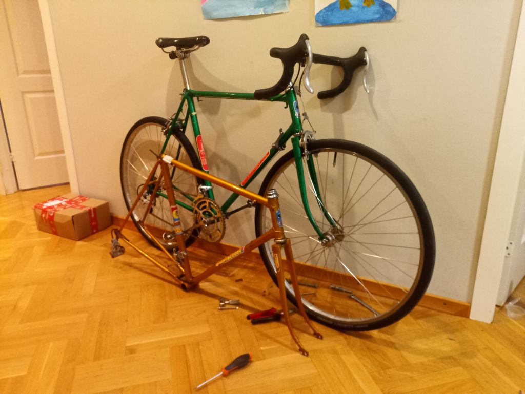 В итоге он с осени тоскливо стоял в гараже, а я периодически думал чего с ним делать. Вроде раньше определился, что шоссер, да на правильных узких колесах мне ни к чему. А вроде бы и хотелось попробовать поздний стартон.