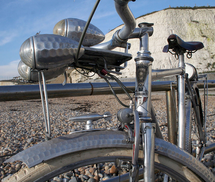 Кстати, нижние трубы этого французского дюралевого байка являются живой иллюстрацией, почему из дюрали раму лучше не делать.