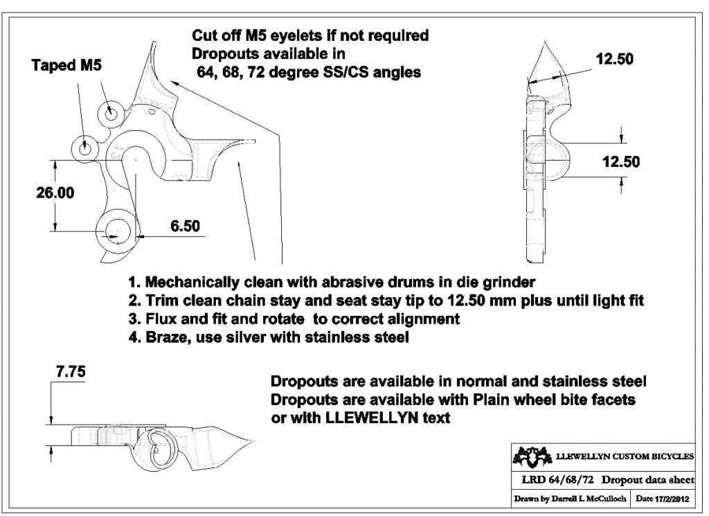 Вот поэтому ув. kisa сразу и предложил при «перепроектировании» укоротить прорезь так, чтобы ось втулки стояла бы точно в местах пересечения продолжения перьев заднего треугольника (как и сделано в предыдущей работе). Разумеется, это для многоскоростных систем или систем с натяжителем цепи.