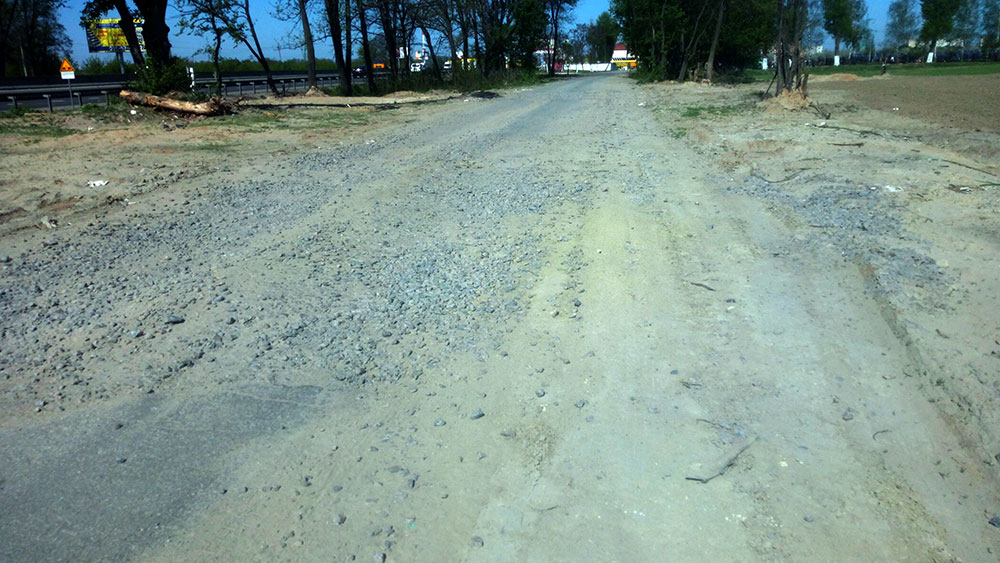 Далее, кусок перед выездом на дорогу "Креничі—В.Дмитровичі" убитый, много больших ям, но сам выезд был в стадии ремонта, а перед ним и после уже вырезаны куски асфальта для ямочного ремонта. Дальше тоже всё плохо, не разгонишься, но надеюсь, что починят и там. Старі Безрадичі, несмотря на грустное название, порадовали приличной дорогой, а дальше, на участке Тарасовка-Нещерів — снова крупнозернистый асфальт и ямы.