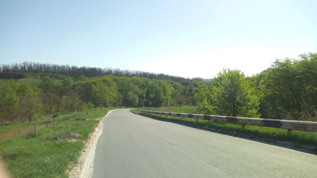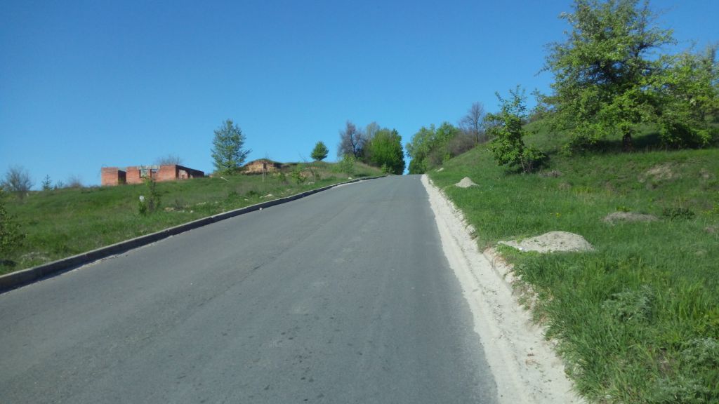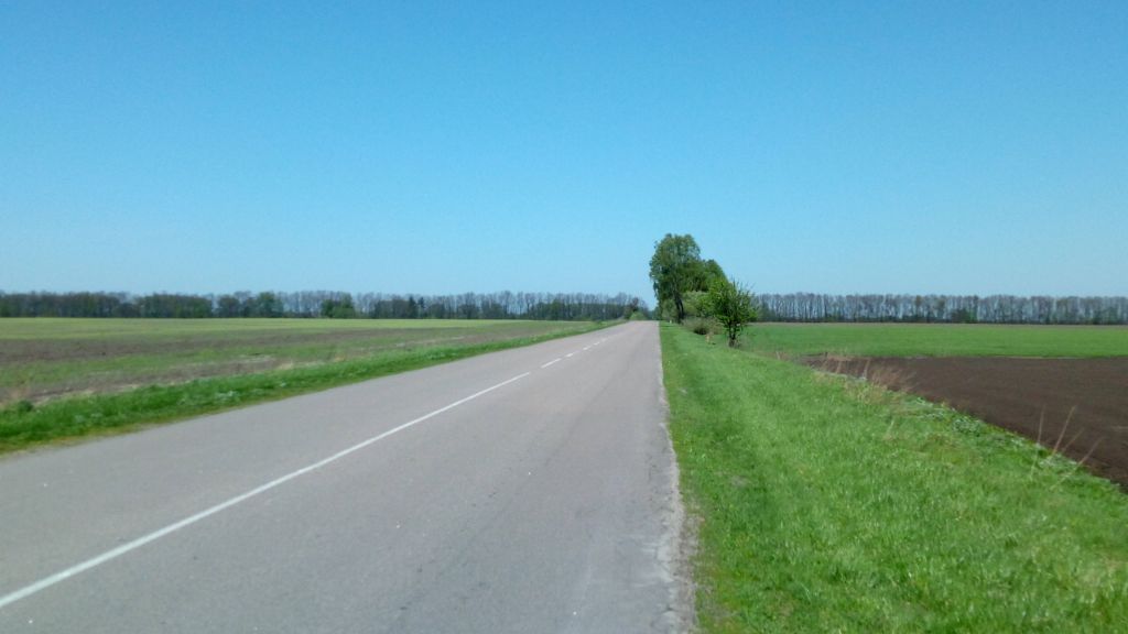 Тем не менее, перетерпев этот участок и добравшись до правого поворота в селе "Велика Бугаївка", мы наконец попадаем на хороший асфальт — сначала на подъем, затем налево и... вот он, кайф шоссера — 6 километров не нового, но всё ещё гладкого и ровного асфальта с бескрайними полями по сторонам. Тут можно и нужно вкручивать аж до посинения — вот она, свобода! Это то, что у твиттерских и фейсбучных шоссеров называется #шоссекс