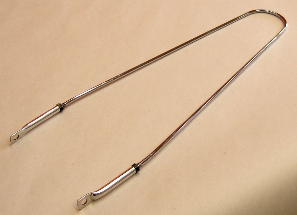 К сожалению, не нашёл ещё распространённого варианта у себя — когда проволочки (трубки) прямые, а элемент около крыла — фигурная пластина. На концах проволочек резьба, в пластине — отверстия, через которые она гайками на усах и держится.