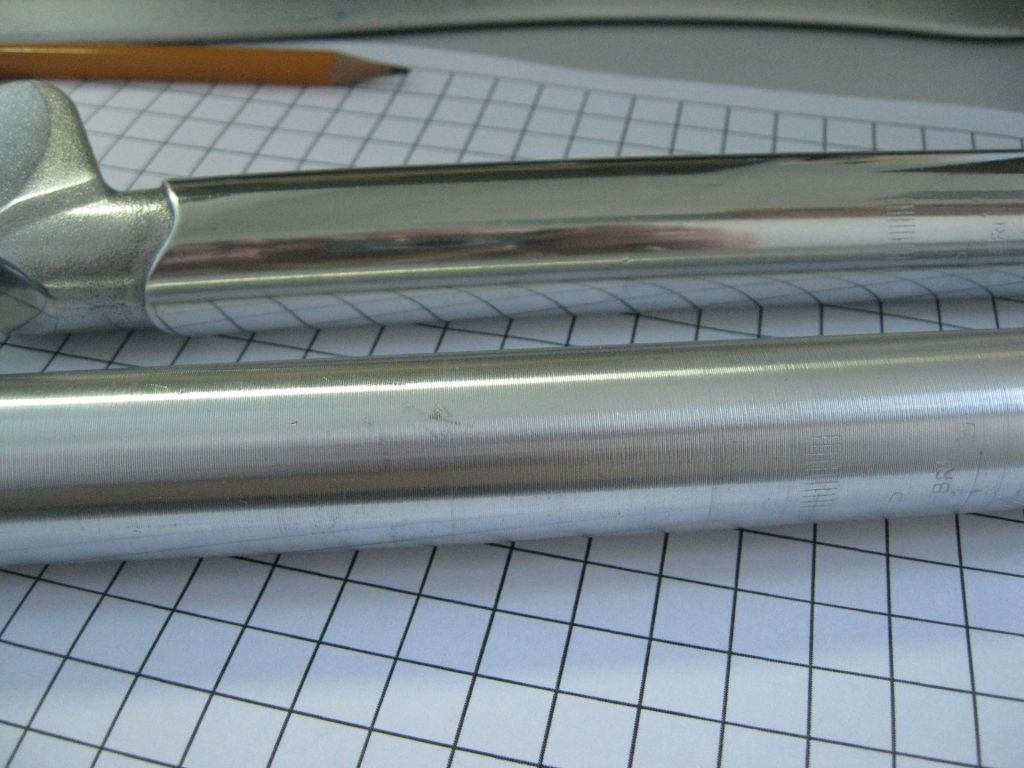 Коллега, на фото выше — это уже Ваш подседельный штырь рядом с моим. Будет интересно посмотреть, что Вы с ним сделаете.  На моем после шлифовки-полировки диаметр изменился и стал от 24,83 мм до 24,86 мм .