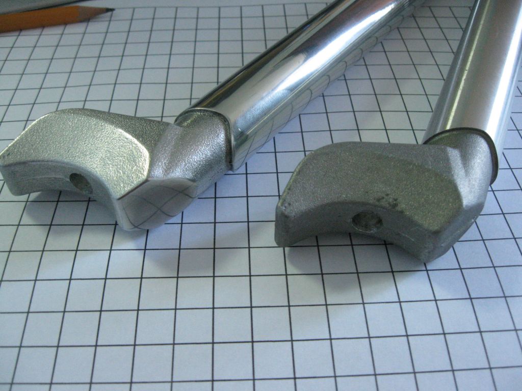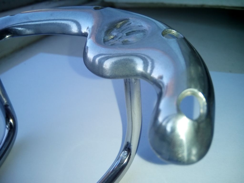 Поездка в цех с вызовом мастера-"ветродуя" в выходной день (он был "рад", но я сгладил свою вину пивом) и рамка старого ржавого седла от СШ отпескоструена. Время работы песком на одну рамку — 40 минут (с перекурами и выпиванием пенного, ну и разговорами "за жизнь"). Дальне памятуя советы и имея перед глазами наглядный пример в виде фото одного известного киевского седла взялся за дремель. Шероховатось убралась резиной с абразивом (темно-зеленая вначале, светло-зеленая потом), далее шкурка 600+800+1000. Закончил войлочным кругом с зеленой пастой ГОИ. Время вылизывания от песка — три с небольшим часа с перекурами и походами за пивом.  Вытер войлочной салфеткой от следов пасты. Результат считаю приемлимым, посмотрим насколько будет коррозиостойкая. Перед установкой крышки покрою еще слоем прозрачного воска.