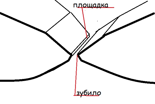 щас попробую..что бы не было защемленний,я точу так,одну сторону под зубило ,другую с площадкой упором для зубила другой стороны,ширина площадки ну примерно 3 рк зубила,извиняюсь ,обьяснил как мог ))