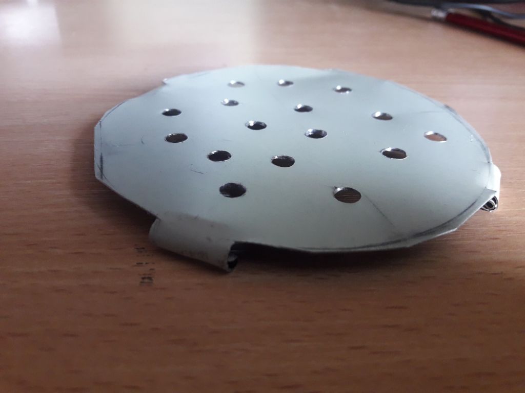 Кусок жести просверлил, по сторонам сделал 4 ножки.