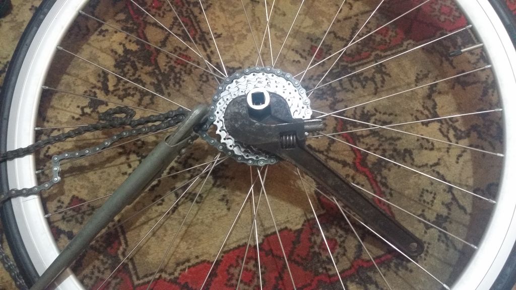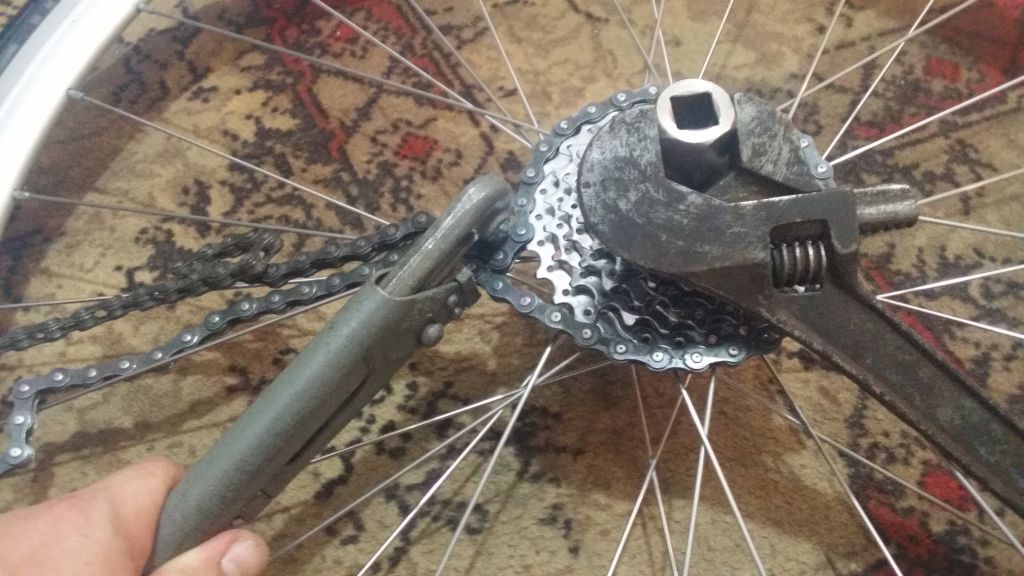 Когда нет хлыста под рукой и лень разматывать сварку чтоб его изобразить, но надо срочно открутить касету или трещетку. Можно попробовать применить газовый ключ обхватив его губками старую цепь как можно ближе к звезде. У меня обычно прокатывает если не закисло.